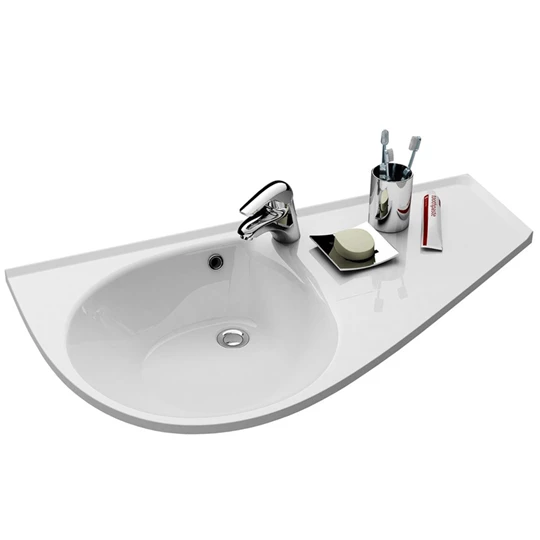 Avocado öntött márvány fali mosdó, túlfolyóval. Fehér színben. Jobb változat.