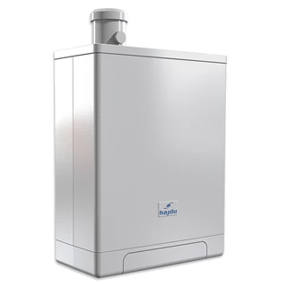 A HAJDU kondenzációs gázkazánok komplex megoldást jelentenek fűtési és melegvíz-rendszerek kialakítására, valamint kiválóan alkalmasak napkollektoros rendszerbe illesztésre. A HAJDU HGK... és HGK Smart típusú kondenzációs gázkazánok falra szerelhető kivitelben készülnek. A speciálisan kialakított cserélőnek köszönhetően a fűtés és melegvíz előállítás egymástól függetlenül is üzemelhet. Az alumínium-vörösréz hőcserélő jóvoltából hosszú élettartamúak. Mivel a legmodernebb kondenzációs technikával rendelkeznek, kategóriájukban nem csak a legmagasabb hatásfokkal működnek, hanem egyben rendkívül környezetkímélők is. A készülékben nincs váltószelep, sem lemezes hőcserélő, így nem kell karbantartani, cserélni ezeket. Kompakt, kis helyigényű készülékek, használatuk egyszerű és kényelmes, karbantartási igényük minimális. A kazán vezérlése lehetővé teszi háromféle vízmelegítési funkció beállítását, igény szerint (hagyományos – BE/KI, Komfort – előmelegített hőcserélő, ill. ECO – öntanuló). A kazánok indirekt tárolóval is összekapcsolhatók. A kazánok modulációs, nagy energiahatékonyságú szivattyúval szereltek. A beépített RF modul lehetővé teszi a kazánok vezeték nélküli távvezérlését; vezeték nélküli rádiófrekvenciás szobatermosztáttal. A pontos odulációnak és a különleges hőcserélőnek köszönhetően, a mindenkori hőigénynek megfelelően funkcionálnak, így mind fűtési, mind vízmelegítés üzemmódban magas vízoldali hatásfokkal tudnak üzemelni. Alapesetben földgázüzeműek (G20), de igény szerint átalakíthatóak PB-üzemre (G31) is. A készülékek 18, 23, 26, 28, 32 és 41 kW-os max. fűtési teljesítményű kivitelben kaphatók. Nagyobb teljesítmény igény esetén kaszkádkapcsolás megvalósítható. A kazánok vezérlő elektronikája beépített időjárásfüggő szabályozóval rendelkezik, amelyhez egy opcióban kapható külső hőmérséklet érzékelőt csatlakoztatva optimális fűtés érhető el. A kazánok rádiófrekvenciás szobatermosztáttal, HAJDU égéstermék elvezetőkkel, szerelő kerettel és zárt tágulási tartállyal, biztonsági szeleppel együtt is rendelhetők.