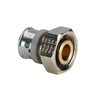 Viega Pexfit Pro átmeneti idom Viega Pexfit Pro csatlakozó-csavarzat 16-3/4" eurokónusz Pexfit Pro csatlakozó-csavarzat SC-Contur-ral (biztonsági kontúr) a következőkhöz: Pexfit Pro Fosta cső, Pexfit Pro Plus cső, eurokónusz vörösöntvény préscsatlakozás, G-menet Présidomok Minden méret SC-Contur-ral (biztonsági kontúrral) rendelkezik – a szereléskor véletlenül nem összepréselt kötések láthatóvá válnak a rendszer feltöltésekor. Az SC-Contur (biztonsági kontúr) tanúsítvánnyal rendelkezik, és kielégíti a DVGW W 534 munkalap kényszer-tömítetlenséggel rendelkező idomokról szóló 12.14 pontjának követelményeit. Vízzel végzett tömörség-ellenőrzésnél a Viega a 0,1 MPa–0,65 MPa nyomástartományban, gázokkal végzett száraz tömörség-ellenőrzésnél pedig a 22 hPa–0,3 MPa nyomástartományban garantálja a nem összepréselt kötések felismerését. Jelölés Zöld pont a préscsatlakozáson
