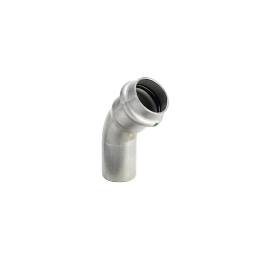 Sanpress Inox. Precíz megoldások vízellátáshoz. Viega Sanpress Inox Nemesacél présrendszer 15 mm-től 108 mm-ig. Megbízható védelem a korrózióval szemben. Nincs többé túlméretezés. A 64 mm-es méret hiányt pótol. Sokoldalú alkalmazásokhoz. A széles kínálat. Erős formák. Ez a rendszer rugalmassá teszi Önt. Viega Sanpress Inox 45°-os ív 22 KB RM A tiszta ivóvíz az egyik legfontosabb életelem. Az ivóvíz a legfontosabb élelmiszerünk. A szerkezeti anyagokkal való érintkezés, üzemszünet alatti felmelegedés vagy a baktériumok szaporodása miatt minősége a vezetékekben megváltozhat. A közegészségügyi hivatalok ezért szúrópróbaszerűen ellenőrzik a középületekből (kórházak, idősek otthonai, éttermek és szállodák) származó vizet. A Viega tervezők, szerelők és üzemeltetők számára megnyugtató biztonságot kínál: a bevált Sanpress Inox komplett rendszerrel, amely minden ivóvízhez korlátlanul használható. Rozsdamentes nemesacél csövek 15 mm és 108 mm között, ehhez megbízható préselt kötések és Easytop rendszerszelepek – ezek a Sanpress Inox nyújtotta garanciák a megbízható higiénia érdekében. Látható vizsgálati biztonság: Minden Sanpress Inox présidom a DVGW által minősített SC-Contur-ral (biztonsági kontúr) készül. Ez lehetővé teszi az Ön számára, hogy már a nyomáspróbánál felismerje a le nem préselt kötéseket. Ha higiéniai okokból „száraz” tömítettségvizsgálatot végeznek, a nyomás a teljes, 22,0 mbar és 3,0 bar közötti nyomástartományban láthatóan leesik. Amikor a berendezést feltöltik vízzel, az 1,0 bar és 6,5 bar közötti nyomástartományban a le nem préselt kötéseknél láthatóan víz lép ki. A Viega szavatolja Önnek az SC-Contur kifogástalan működését. Összepréselve a kötés tartósan biztos és tömített – ez a megbízhatóság milliószor bebizonyosodott. Sanpress Inox 45°-os ív SC-Contur-ral (biztonsági kontúr) rozsdamentes acél bedugóvég, préscsatlakozás Kialakítás/felszereltség EPDM tömítőelem modellszám 2326.1