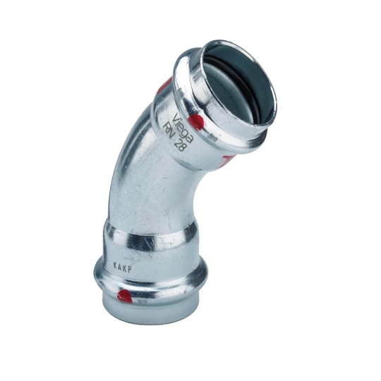 A Viega Prestabo rendszere a szakemberek körében magas megbízhatóságáról és biztonságáról ismert. A kívül horganyzott acélból készült préselt csőkötési rendszer emellett a 15–108 mm-es tartományban minden méretben – beleértve a 64 mmes „közbenső” méretet is – kapható. Fűtésszerelésekhez, zárt hűtőkörökhöz vagy sűrített levegő-berendezésekhez a Prestabo rendszer egy gazdaságos alternatíva. Főleg akkor, ha a csőkötések nem időigényes hegesztéssel készülnek, hanem gyorsan és biztonságosan összepréselhetők, mint az összes Viega présrendszernél. Viega Prestabo 45°-os ív 45 BB 15 Prestabo 45°-os ív SC-Contur-ral (biztonsági kontúr)