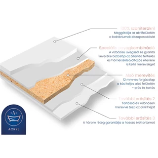 Az akrilkád erős, tartós, kellemesen szobahőmérsékletű és az általunk használt szaniterakril antibakteriális is.