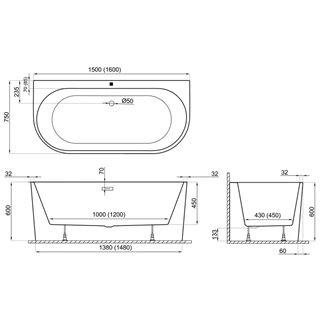 - félig szabadon álló kád / falhoz tolható szabadon álló kád,