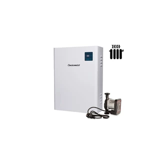 Új fejlesztésű elektromos kazán, elektronikus vezérléssel, keringető szivattyú és tágulási tartály nélkül. Fő fűtési vagy kiegészítő fűtési megoldásként egyaránt jól használható, például fatüzelésű kazánnal, egy fűtési rendszerbe telepítve.