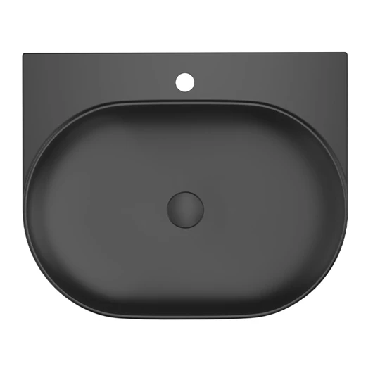 Vékony falú kerámia Yard mosdó Yard konzolra történő telepítéshez, túlfolyó nélkül. Matt fekete kivitel. Lyukkal álló csaptelephez.